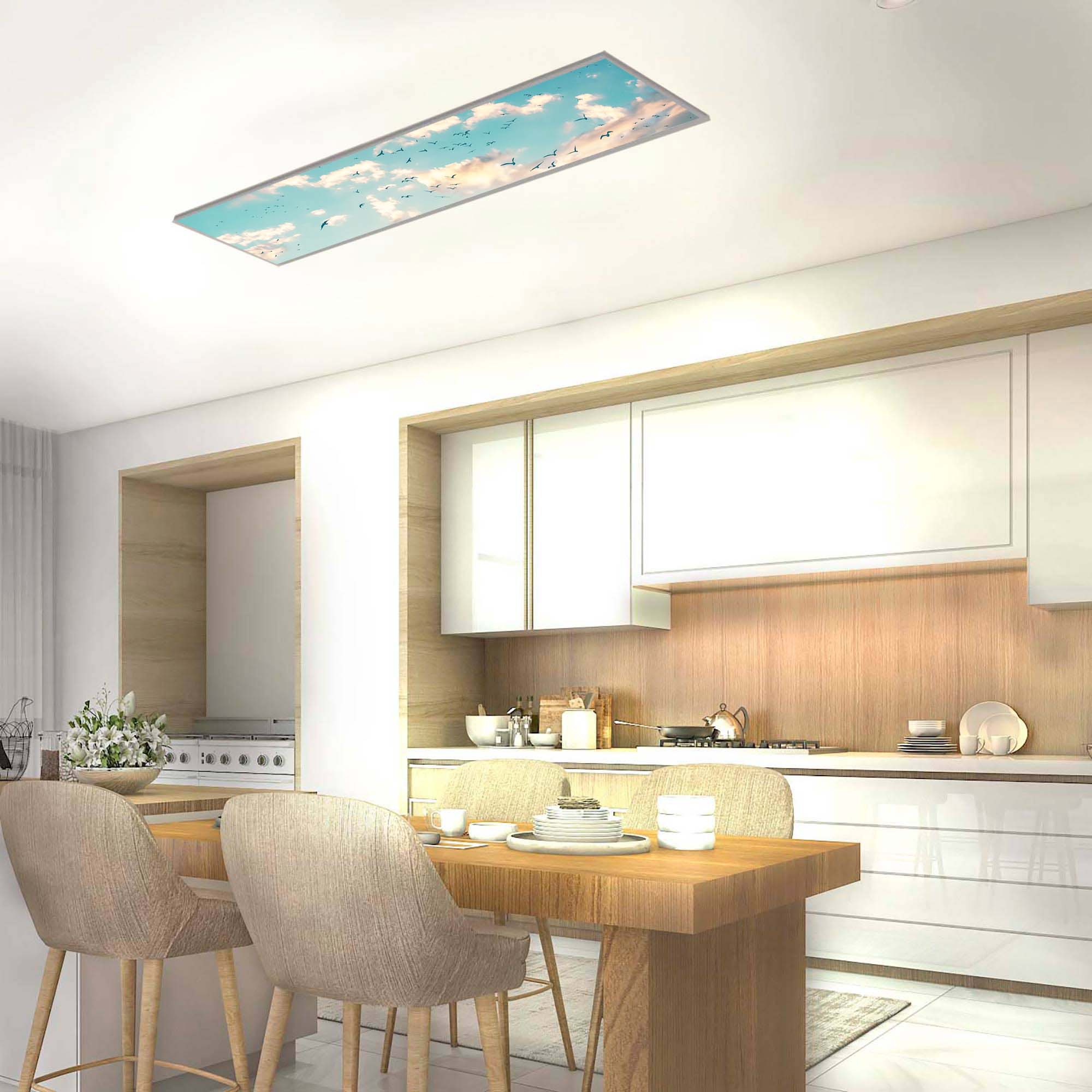 Choisissez le format, la forme et le visuel pour complètement personnaliser votre plafonnier cuisine et désigné sous forme de panneau LED.