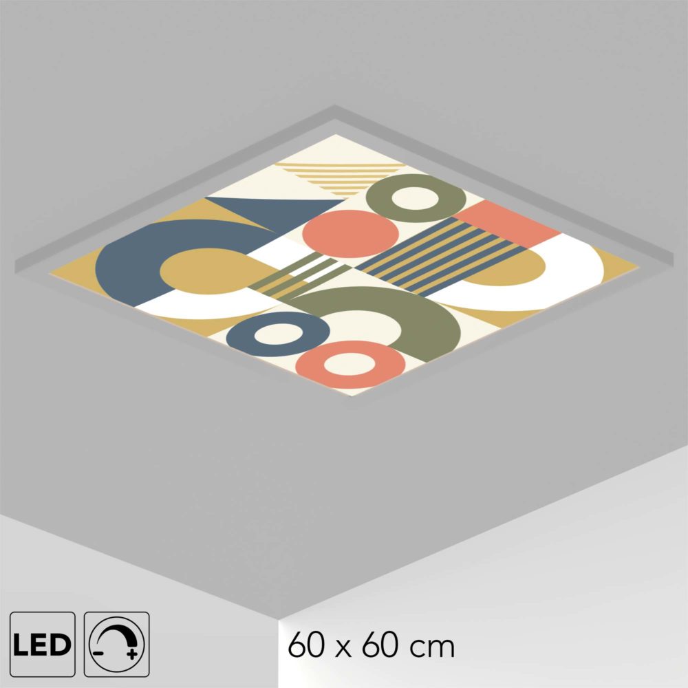 Le plafonnier comprend le panneau LED personnalisé avec le visuel, une alimentation et en option un interrupteur mural-variateur pour régler l’intensité de la lumière dans votre pièce.