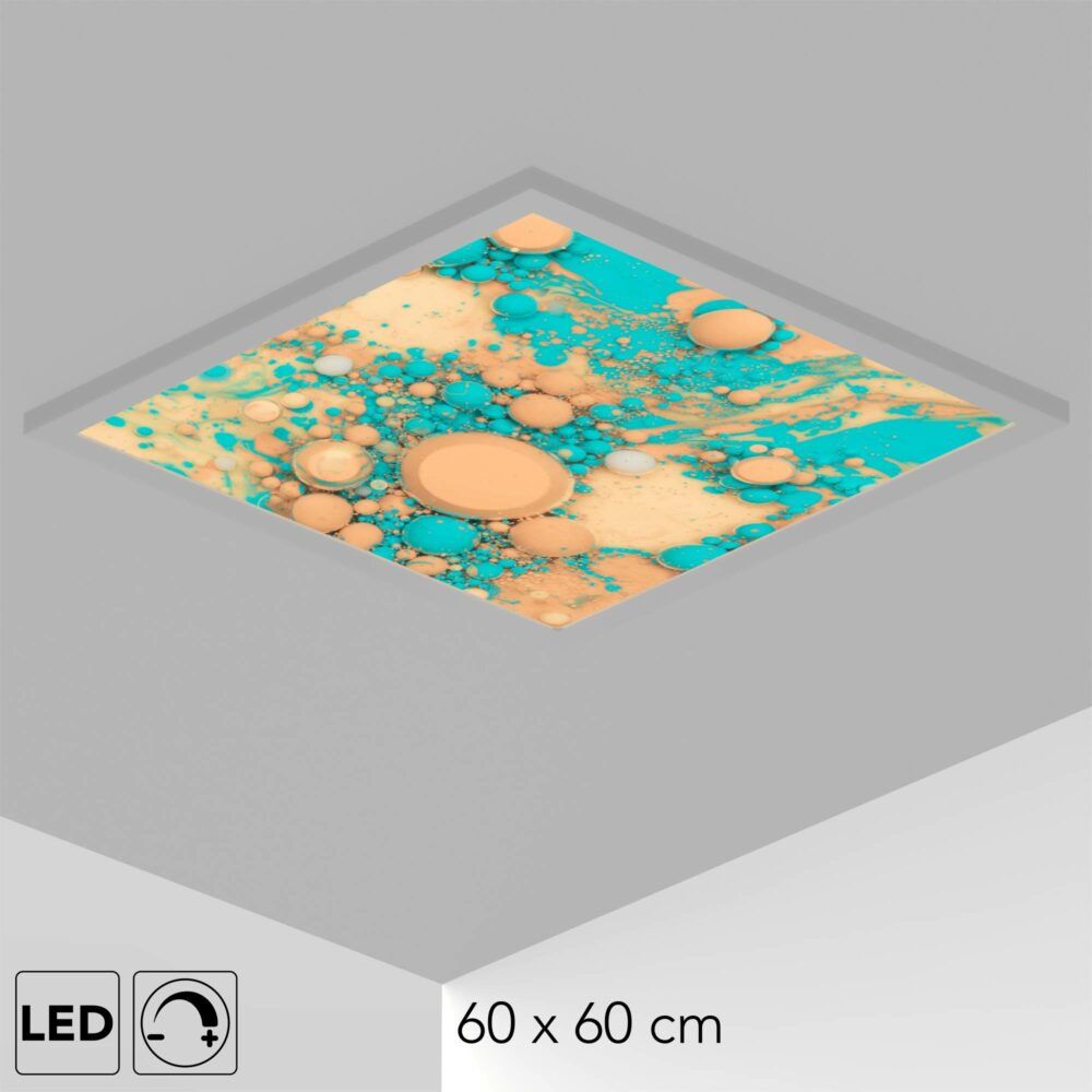 Le plafonnier comprend le panneau LED personnalisé avec le visuel, une alimentation et en option un interrupteur mural-variateur pour régler l’intensité de la lumière dans votre pièce.