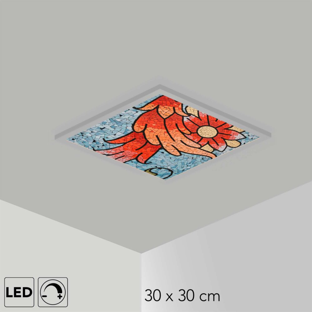 Le plafonnier comprend le panneau LED personnalisé avec le visuel, une alimentation et en option un interrupteur mural-variateur pour régler l’intensité de la lumière dans la chambre de votre enfant.
