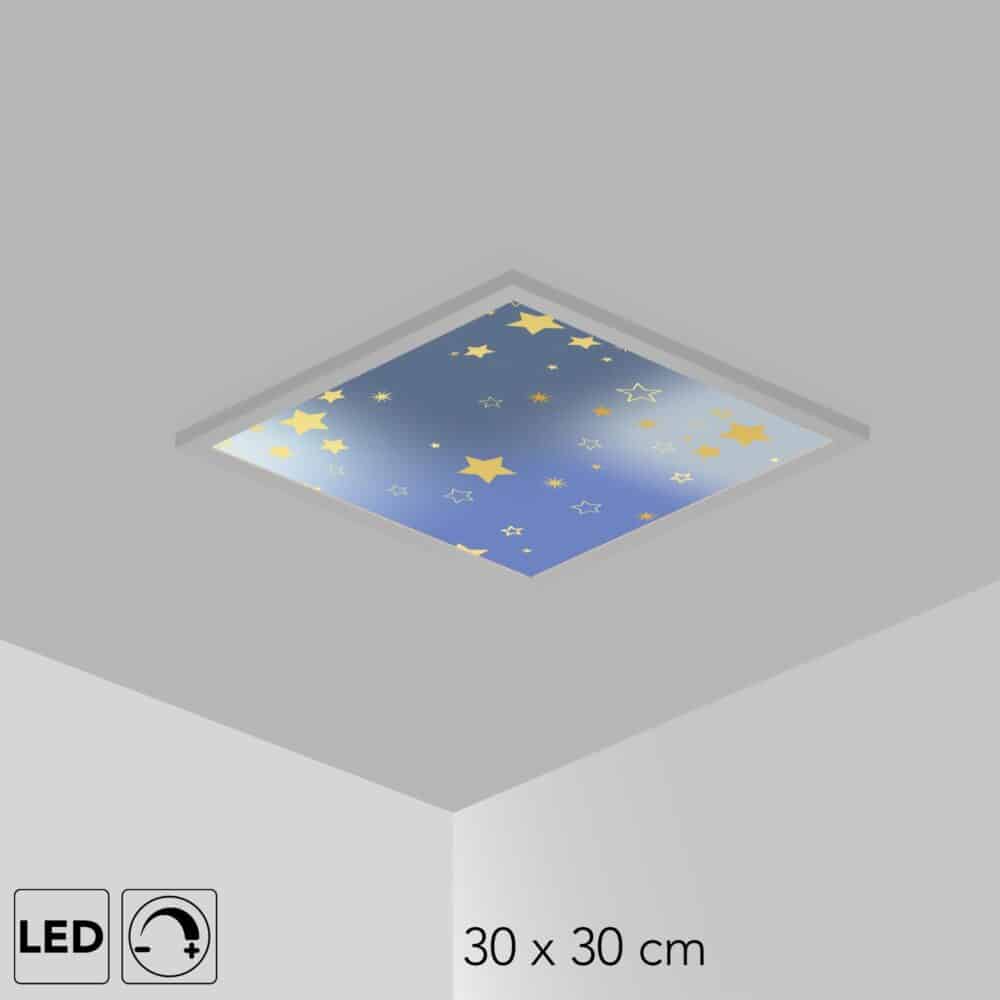 Le plafonnier comprend le panneau LED personnalisé avec le visuel, une alimentation et en option un interrupteur mural-variateur pour régler l’intensité de la lumière dans la chambre de votre enfant.